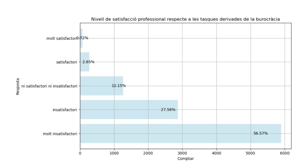 Un 57% del professorat català es mostra gens satisfet per la burocràcia a què ha de fer front i un 27,56% està insatisfet, amb un total del 84,13%. Aquesta xifra suposa el principal factor d’insatisfacció dels docents, segons un estudi presentat aquest dimecres pel sindicat USTEC·STEs (IAC), tres dies abans de la manifestació unitària del 15 de novembre que tindrà lloc a Barcelona.