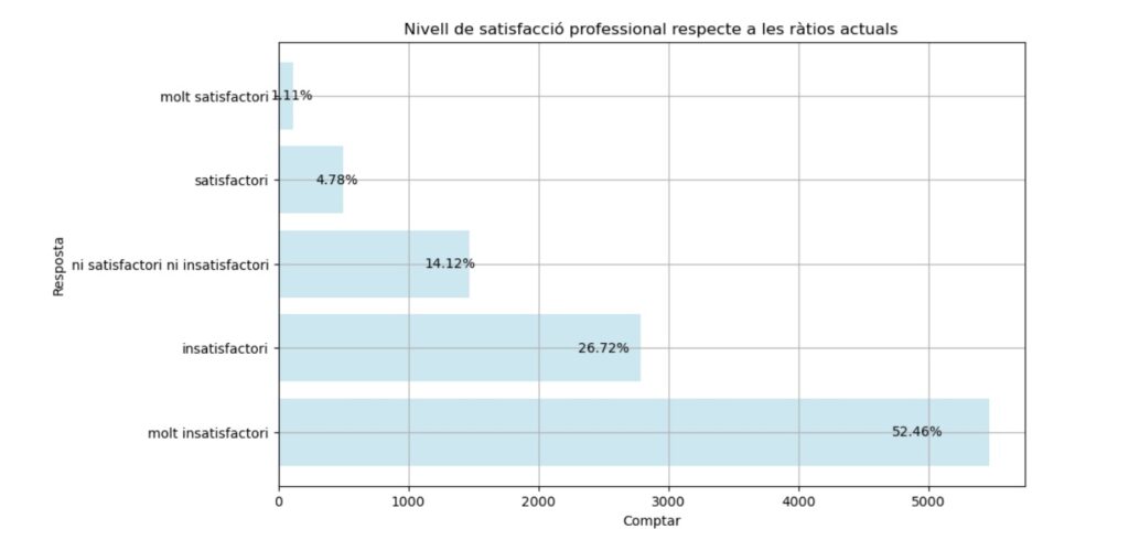 Pel que fa a les actuals ràtios, el coordinador de l’estudi diu que pràcticament hi ha “unanimitat” en què són un problema crític. Prop del 80% es mostra insatisfet i tan sols el 6% les considera adequades, un percentatge més estès a les zones rurals.