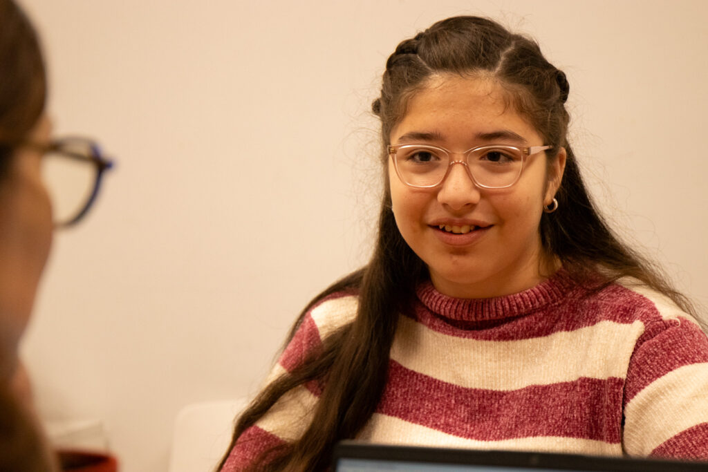 Lucía: A mi m’agrada molt poder participar d’aquests espais. Fa poc vaig liderar el procés participatiu per canviar el pati del Casal Sant Martí, on vaig a les tardes.