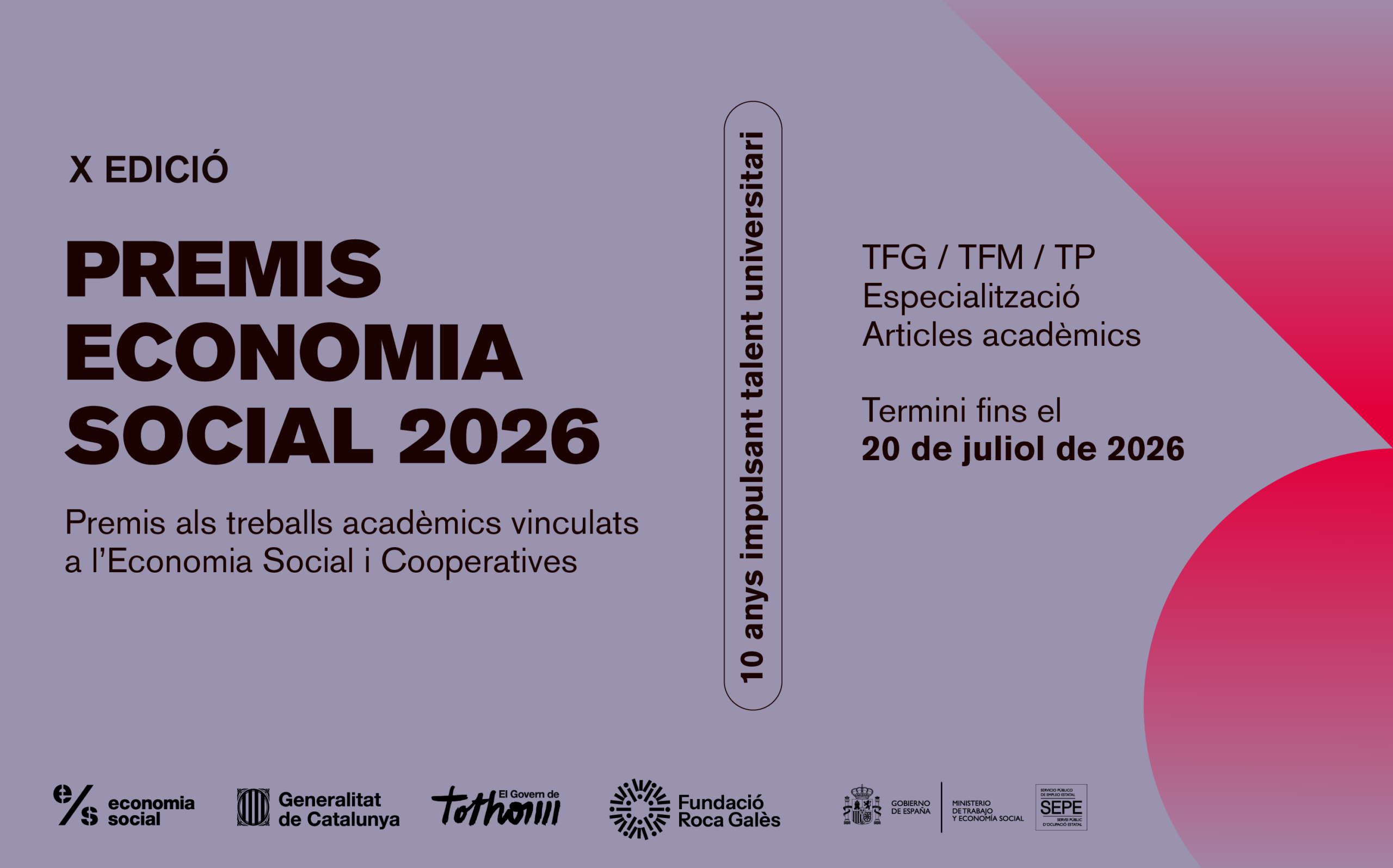La Fundació Roca Galès, en col·laboració amb el Programa de foment de l’economia social de la Direcció General d’Economia Social i Solidària i el Cooperativisme, convoca la desena edició dels Premis d’Economia Social, un reconeixement als millors treballs acadèmics sobre economia social i cooperativisme.