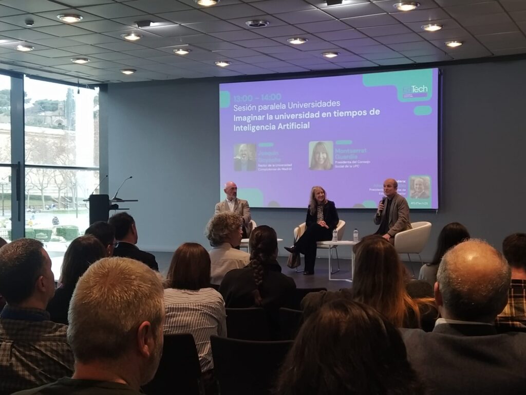 Aquestes són algunes de les tesis que han defensat la presidenta del Consell Social de la Universitat Politècnica de Catalunya (UPC), Montserrat Guàrdia, i el rector de la Universitat Complutense de Madrid (UCM), Joaquín Goyache, en el marc de l’EdTech Congress Barcelona celebrat el 4 i 5 de febrer al Palau de Congressos de Barcelona.