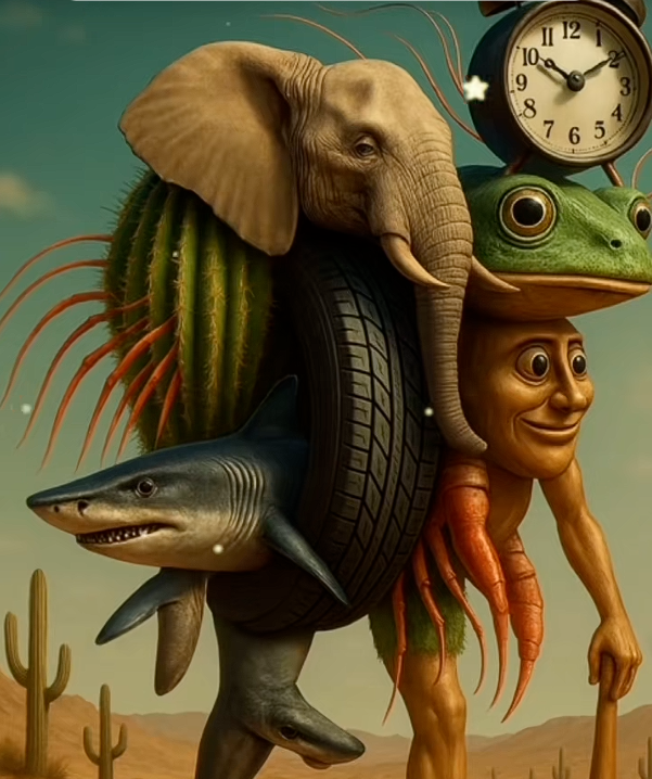 El brainrot no aconsegueix dir res de nou, oferir solucions ni diferents punts de vista, sinó que repeteix formes antigues i representacions problemàtiques. En la majoria dels casos, les figures representades reforcen estereotips racistes i colonials, i reafirmen els rols de gènere patriarcals i binaris. En la producció d’aquest tipus d’imatge, és molt habitual que el mateix dispositiu de generació artificial proposi iconografia bel·licista: armes de foc, medalles i insígnies, estampats de camuflatge, etc. Una de les representacions més populars és la de l’híbrid-avió de combat, en la que diferents animals, objectes o personatges públics amb parts d’avió es disposen a bombardejar territoris. La investigadora i artista Hito Steyerl traça una correlació entre aquestes imatges i l’aeropittura, la tendència pictòrica militarista del període d’entreguerres a Itàlia. La romantització i normalització visual de les eines de matar funciona com a propaganda feixista. Aquestes són figures que, lluny de convidar a imaginar futurs possibles, reiteren i reafirmen el passat sense incloure perspectiva crítica. En aquest sentit, els principis d’aquestes imatges coincideixen amb els de les ideologies conservadores. Aquesta nostàlgia disfressada d’avenç és pròpia de tota imatge generada, no només de les brainrot. Es tracta de representacions privilegiades per a la difusió de pensament reaccionari, a més, perquè aconsegueixen passar el filtre ineficaç de les xarxes en contra dels discursos d’odi. Els personatges, malgrat híbrids, són sovint caricatures ofensives i repetides d’algun col·lectiu o grup fàcilment identificable.