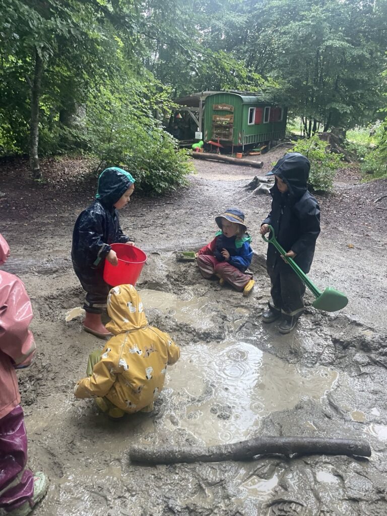 “Moltes persones pregunten com gestionem el mal temps. Veuen el vent o la pluja com un inconvenient. A vegades penso que han oblidat com es divertien de nens. Quan fa vent, es pot fer volar objectes o simplement sentir-ho en la cara. Això és divertit. Els dies de pluja, quan els nens ja s’han adaptat al clima, són sovint els millors en el bosc. He conegut molt pocs nens als quals no els agradi jugar amb aigua. Quan plou hi ha tolls en els quals xipollejar, els barrils d’aigua estan plens i en el sorral es formen llaguets”.